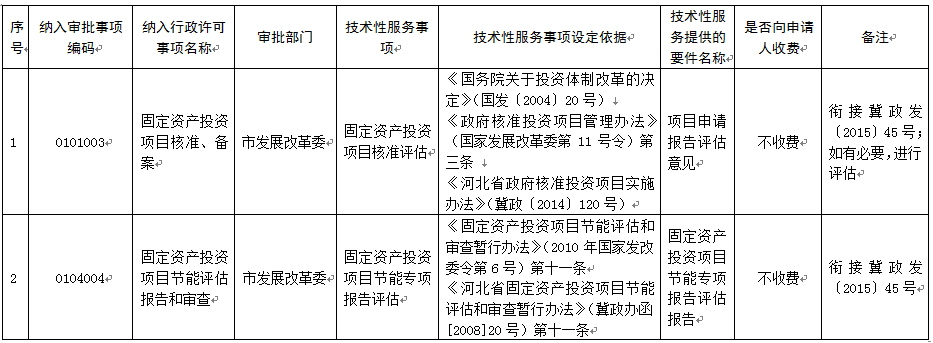 市发改委纳入市政府部门审批程序的技术性服务事项清单